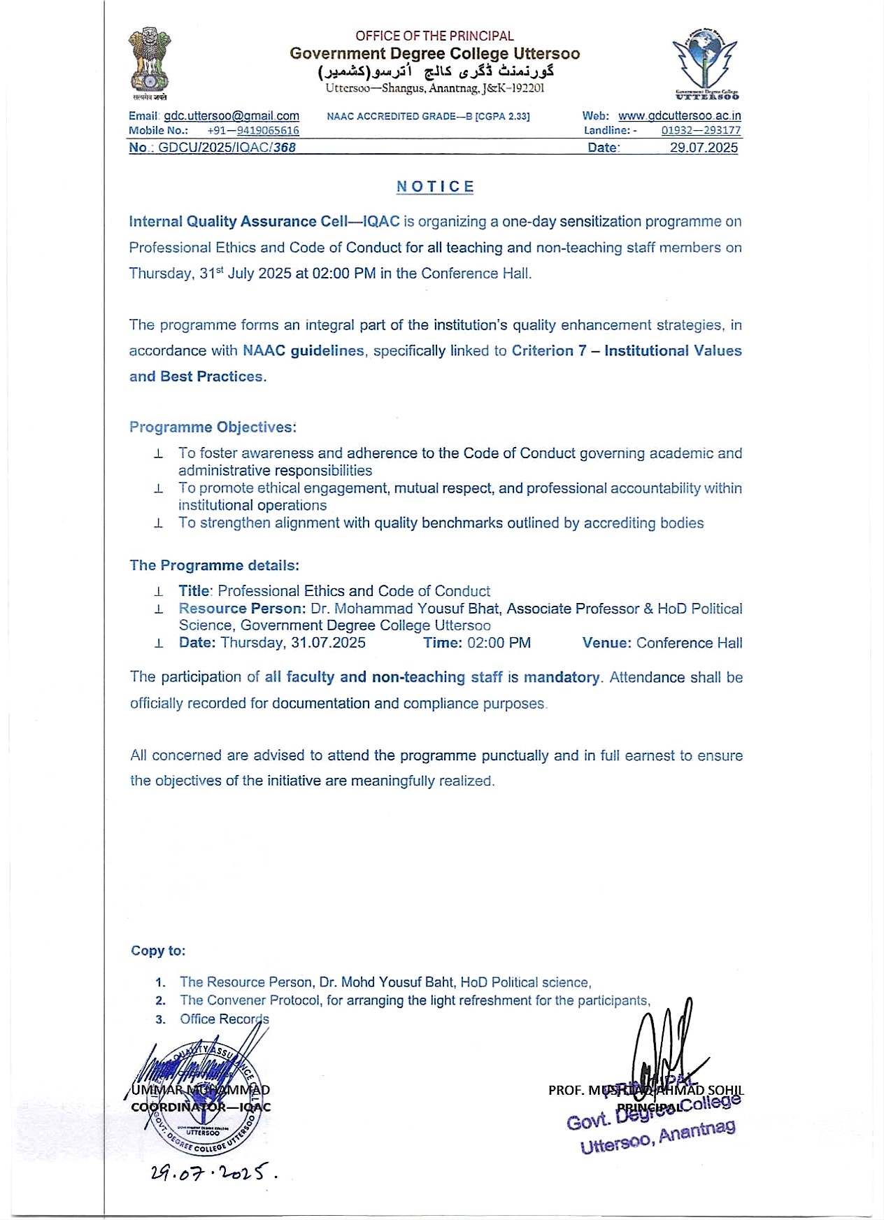| Maintained and updated by Government Degree College, Uttersoo |